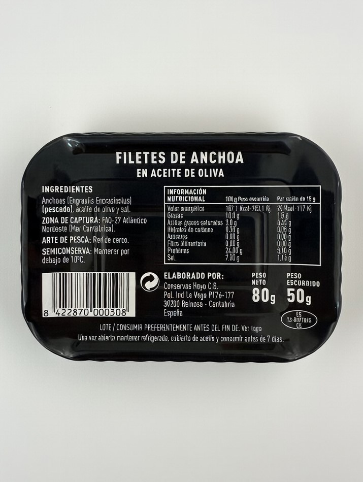 ¡Anchoas del Cantábrico en Aceite de Oliva Hoyo 80 g!