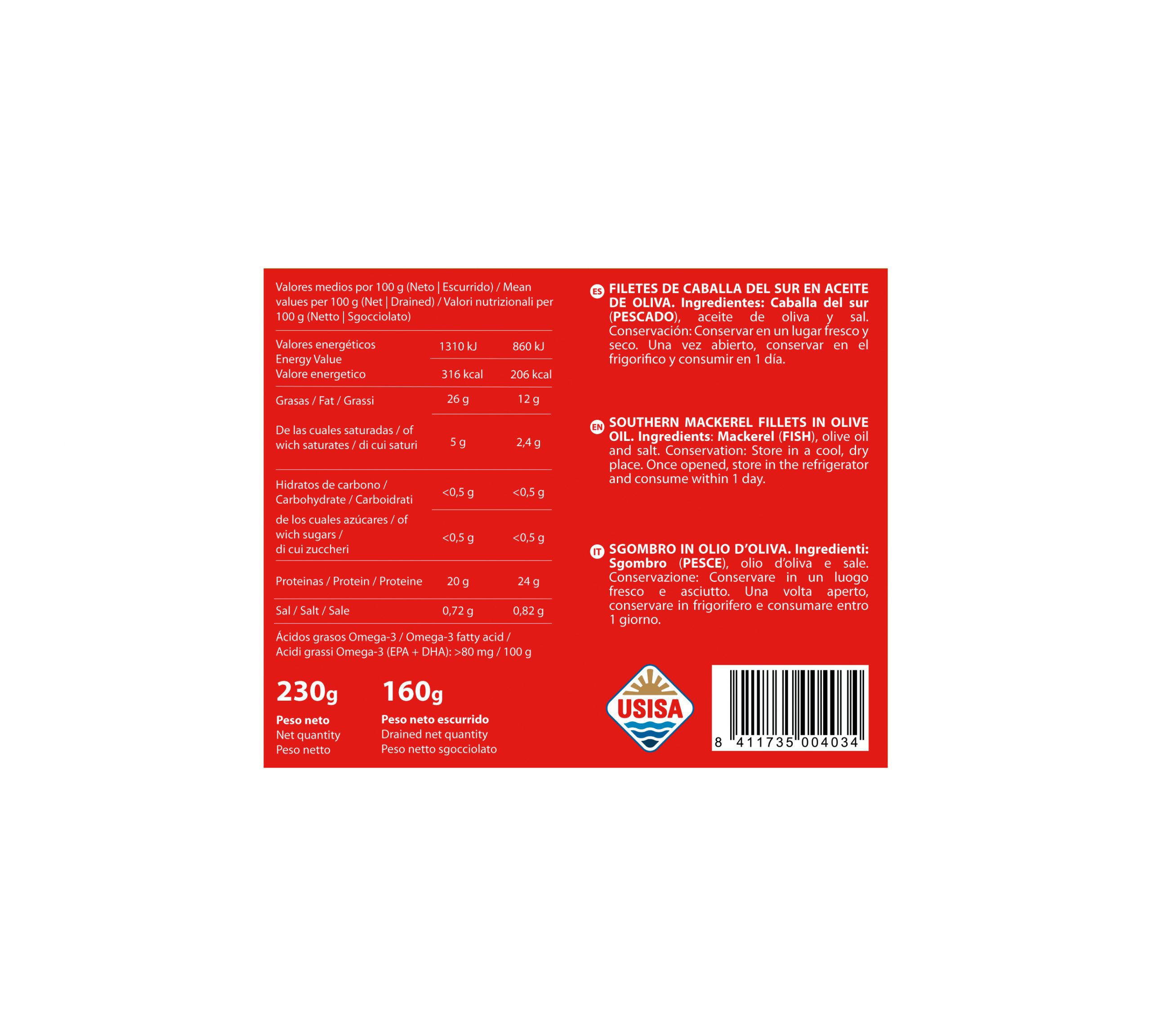 • Amplia Gama de Usos: La caballa en conserva es versátil y se puede utilizar en ensaladas, pastas, bocadillos, y más. Su sabor intenso y su textura firme la hacen ideal para una variedad de preparaciones.