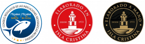 Por otro lado, nos encontramos con sellos específicos de nuestra producción, nuestro origen y las especies trabajadas en nuestra fábrica, sobre las que hemos especializado nuestra elaboración de conservas.