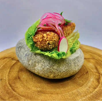 SSAM DE SARDINA CRUJIENTE EN TOMATE, SRIRACHA Y CEBOLLA ENCURTIDA EN VINAGRE DE JEREZ
