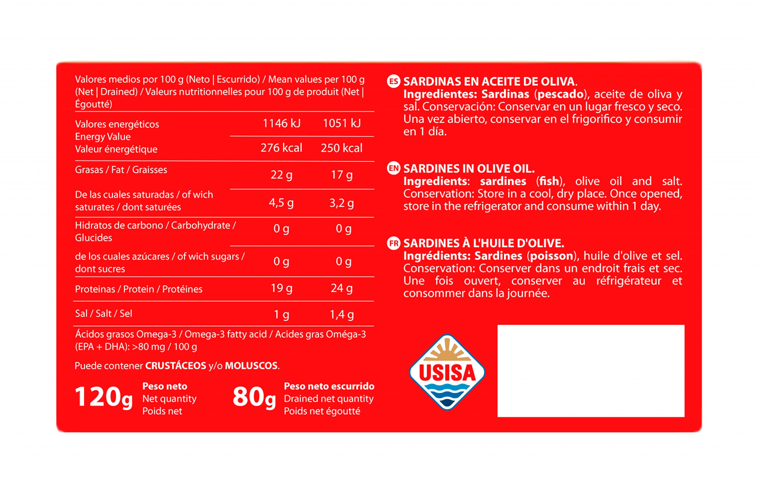 - Conservación Prolongada: Las conservas de sardinas tienen una larga vida útil y no requieren refrigeración antes de abrirse, lo que las hace ideales para almacenar en la despensa.